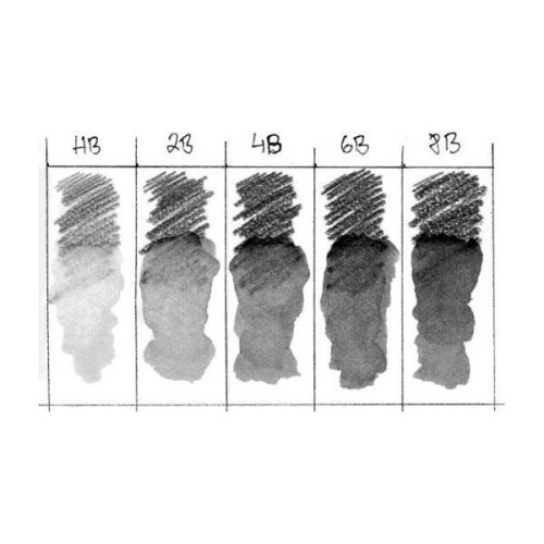 Grâce à sa parfaite solubilité à l’eau, quelques coups de pinceaux suffisent pour obtenir des effets uniques et donner à son œuvre une toute nouvelle dynamique. Les 5 degrés de dureté (HB, 2B, 4B, 6B et 8B) offrent toute une palette de contrastes, permettant de créer facilement de nombreux dégradés.