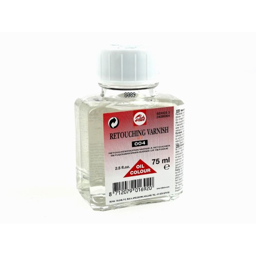 Vernis à retoucher pour la peinture à l'huile, vernis final léger. Il élimine les zones opaques qui se forment dans les intervalles d'exécution de la peinture. Flacon de 75ml , 250ml et 1 litre.
