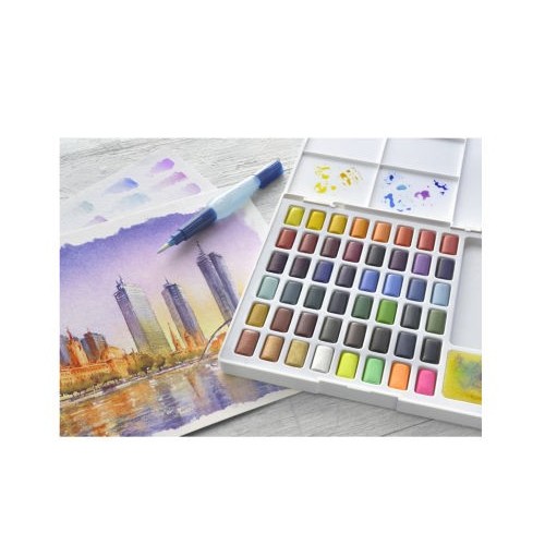 Le set de 48 demi-godets d'aquarelle Faber-Castell est parfait pour une utilisation nomade. Livré avec un pinceau à réserve d'eau.