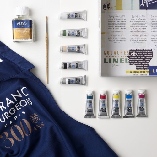 Le coffret Lefranc Bourgeois édition spéciale 300 ans est idéal pour découvrir la gamme Linel. Ce set contient le matériel nécessaire à la pratique de la gouache extra-fine, les couleurs primaires fondamentales, des accessoires et une offre exclusive. Tentez de gagner l'un des 300 tickets d'or d'une valeur de 50€ placés aléatoirement dans la collection de coffrets!